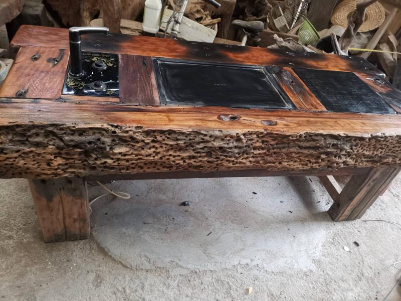 百年老船木桌长两米宽80多,木质厚实,带有天然海螺孔,做工粗犷自然。,整 ... |