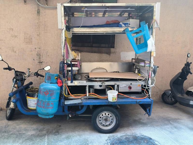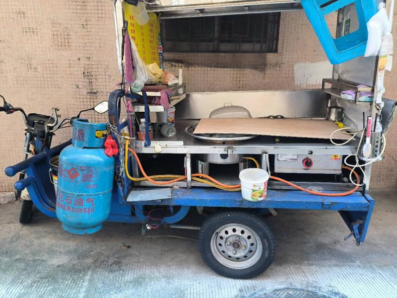 详细描述: 转让小吃三轮车一台,车刚买1年,电池60v20A刚换1月。包括之前做煎饼果子的锅、铁板、铲、桶等厨具,灯带等其他摆摊设施完全正常状态。价格2900元,电话****。