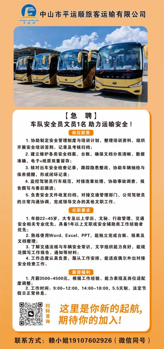 【急聘】车队安全员文员1名 助力运输安全 期待你的加入