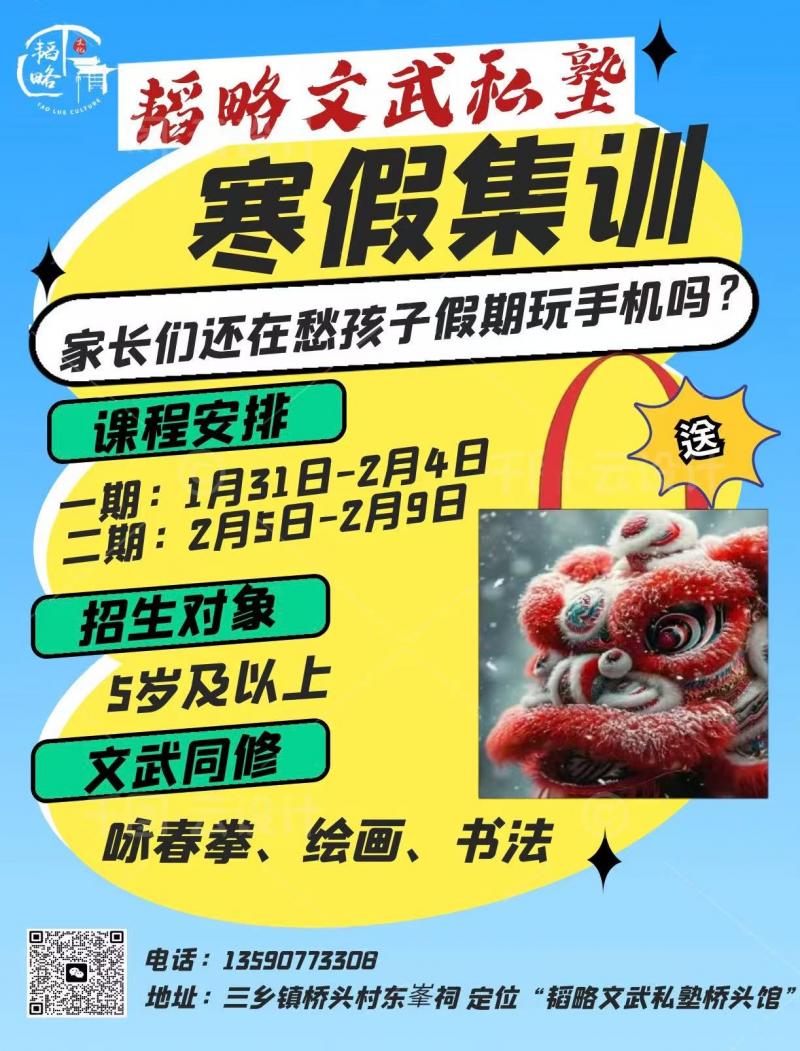 三乡桥头村百年古私塾✨韬略文武私塾寒假班招生啦!