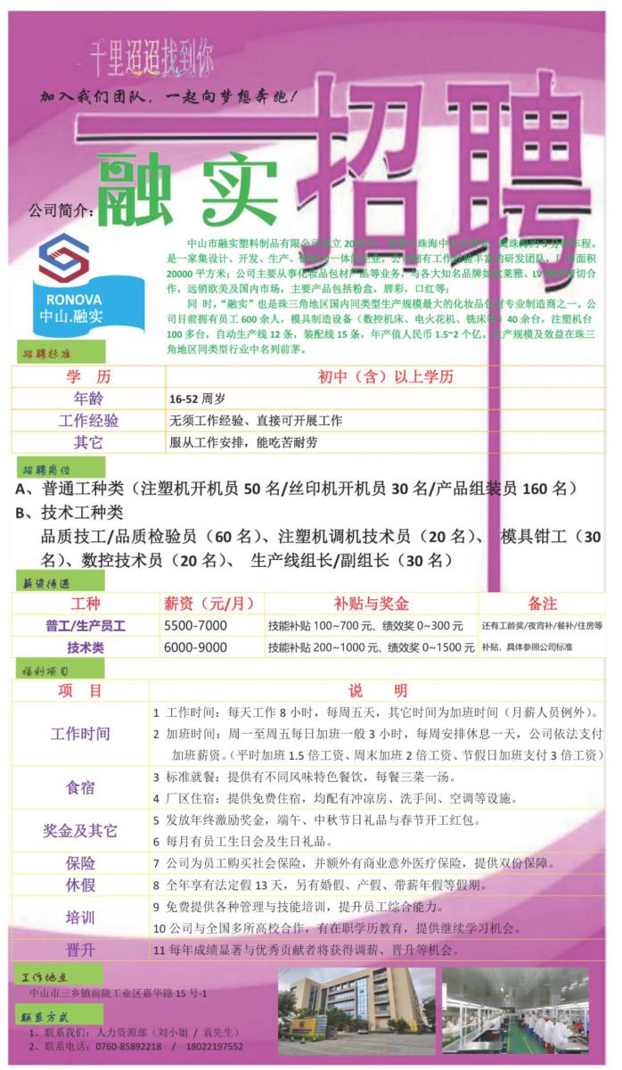 工厂直招,组装员/包装员/临时工/清洁工等多岗位,空调车间,无须经验,直接上手可做,联系电话****