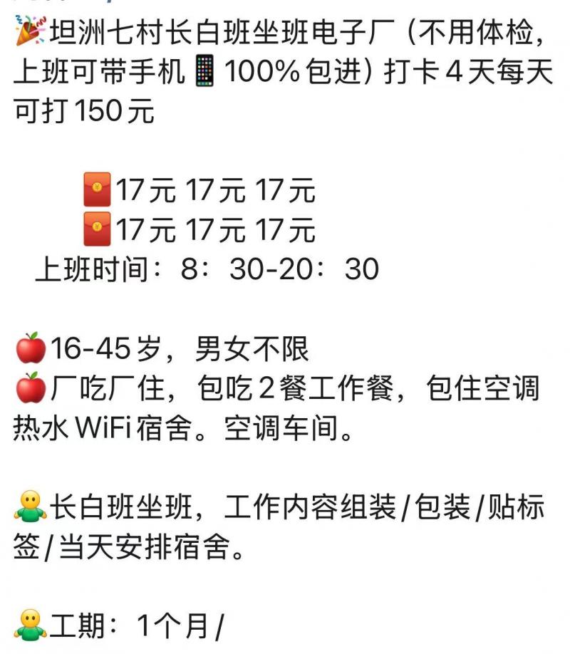 三乡,坦洲,珠海各工厂大量招聘普工,可做临时工,长期工,日结工。每个星期可预支,辞工马上结清工资。免费招聘,不收任何费用。诚信经营,人走账清,一次合作,终身朋友!