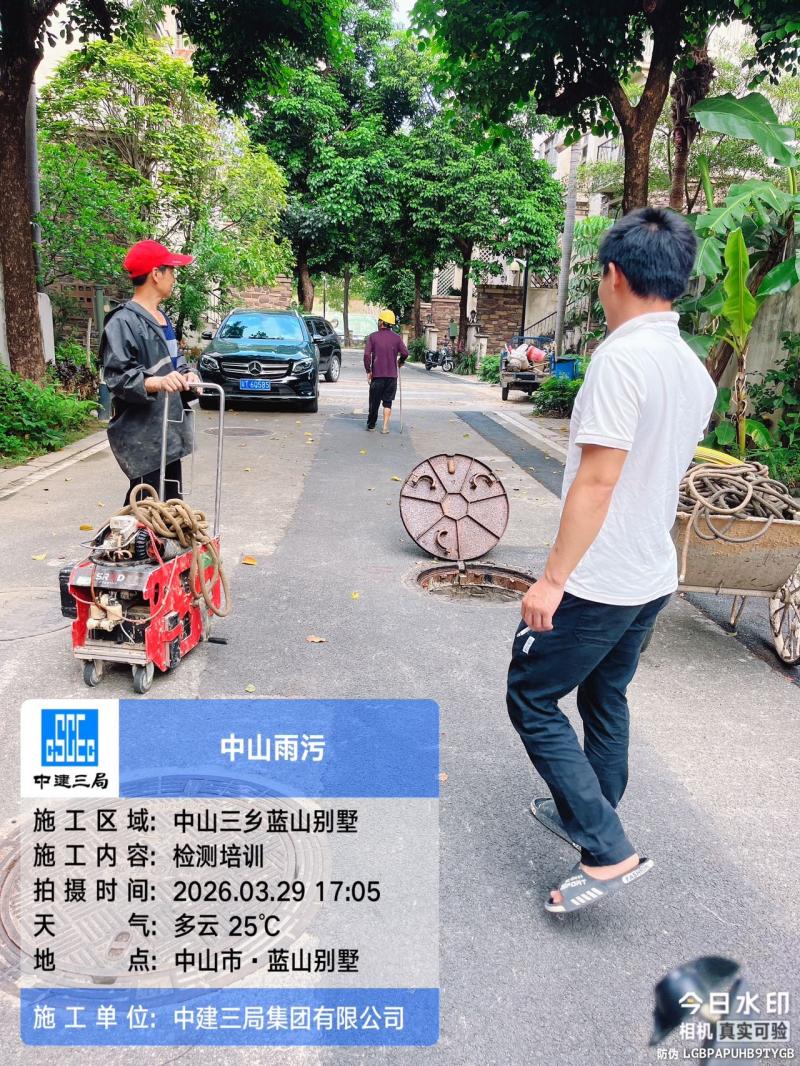 工作地址: 中山三乡东城花园,小工2名,雨污分流管道检测相关,CCTV检测,管道清理