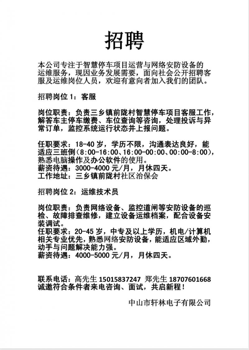 1、熟悉网络安防设备,能适应外勤户外工作。