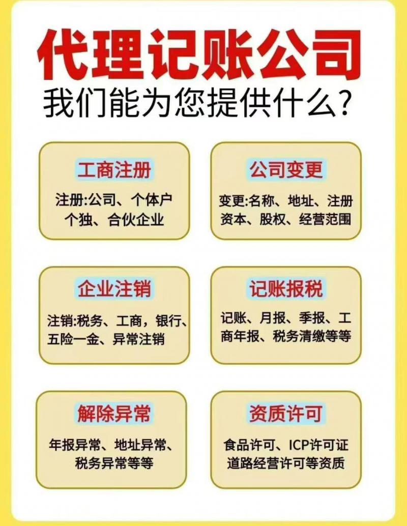 代办营业执照、代理记账、税局咨询。