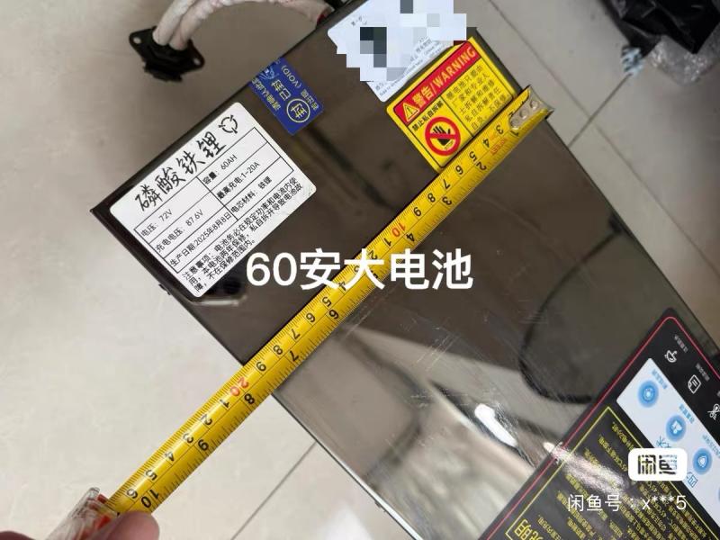 72 伏 60 安锂电池,尺寸自己看,买了用了几次,循环充电 13 次,电压稳定容量充足,有蓝牙保护板可查看电池状态,因为把车卖了就闲置下来了。